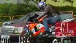Ponowny pomiar prędkość, na ograniczeniu do 80 km/h, wykazał już, że motocykl pędził z prędkością 193 km/h. Kierujący w dalszym ciągu nie reagował na sygnały do zatrzymania. Uciekając, dopuścił się wielu kolejnych wykroczeń, m.in. wyprzedzał na podwójnej ciągłej, na przejściu dla pieszych, na skrzyżowaniu wjechał na czerwonym świetle, jechał pod prąd i po niewłaściwej stronie jezdni. Doprowadził też do kolizji z samochodem.