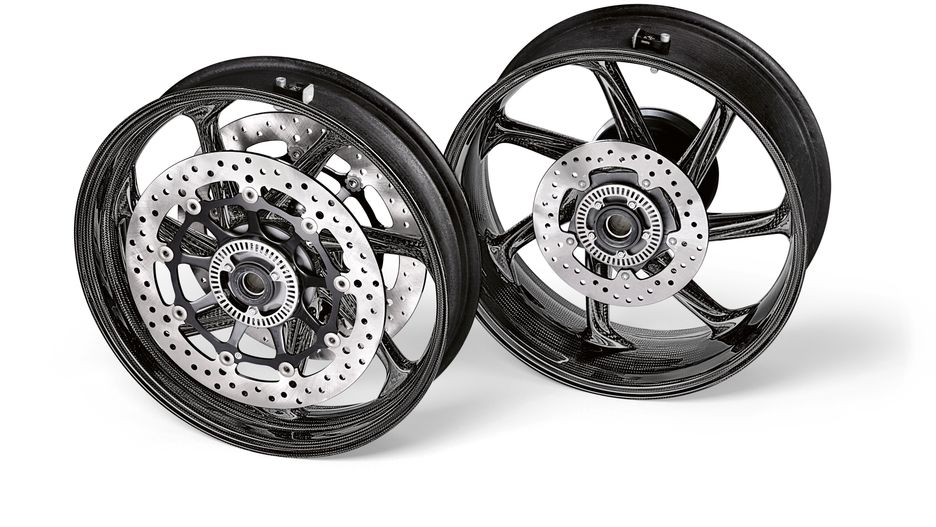 W przypadku BMW S 1000 RR w najnowszej odsłonie tego modelu mocno postarano się o obniżenie masy – również kół. Najnowsze aluminiowe obręcze są o 1,6 kg lżejsze niż poprzednio. Natomiast debiutujące koła M Performance z włókna węglowego to dalsze 1,7 kg w dół. Co więcej, razem z nimi dostaje się grubsze tarcze hamulcowe mierzące 5 mm (standardowo jest to 4,5 mm).