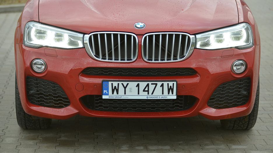Fenomen SUV-ów o sylwetce coupe zapoczątkował model X6. Wprowadzenie mniejszego auta wydawało się więc być jedynie kwestią czasu. BMW stało się prekursorem, ale w tym roku dominacja została zagrożona przez wyraźnie spóźnioną konkurencję. Mercedes zaoferował GLE, a Audi już w przyszłym roku planuje rozpocząć produkcję Q4. Coraz popularniejsza nisza nieco dziwi, bo widoczne na zdjęciach X4 nie ujmuje ani praktycznością, ani ceną. Jest jednak bardzo wyraziste, zwłaszcza w czerwonym kolorze, a także na 19 lub 20-calowych obręczach ze stopów lekkich. Nadwozie mierzy 467-centymetrów długości, 188 szerokości i 162,5 wysokości. Można je wzbogacić w pełni LED-owymi światłami, M-Pakietem oraz czarnymi listwami wokół okien. Potężnych rozmiarów nerki utrzymane w srebrnym kolorze dodają temu SUV-owi dynamiki.
