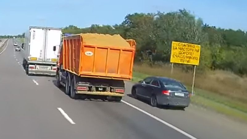 Sytuacja miała miejsce w Rosji, na odcinku drogi M4 w Woroneżu. Bardzo zniecierpliwiony kierowca audi uparcie szukał sposobu na wyprzedzenie ciężarówek. Podjął najgorszą decyzję z możliwych i wybrał pobocze.