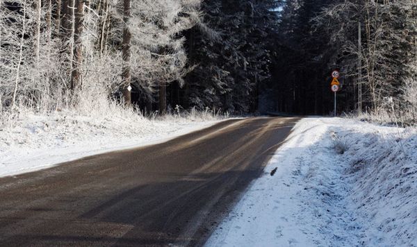 Na zaśnieżonej lub oblodzonej drodze zdecydowanie redukujemy prędkość. Podwajamy także dystans do poprzedzających nas samochodów. To daje pewną gwarancję, że w krytycznej sytuacji zatrzymamy się za pomocą własnych hamulców, a nie zderzaków i bagażnika auta przed nami.