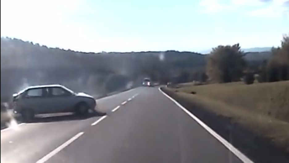 Autor nagrania poprawnie podszedł do wyprzedzenia wolniej jadącego pojazdu. Linia z jego strony była przerywana, odczekał aż jadący w przeciwną stronę samochód przejedzie i zjechał na lewy pas. Przyspieszył i gdy kończył manewr można zauważyć, że kierowca auta naprzeciwko panikuje i ucieka z drogi. Wpada w poślizg, uderza bokiem w barierkę a następnie odbija się i przelatuje na drugą stronę jezdni.