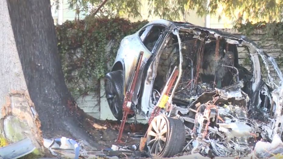 Auto jest całkowicie zniszczone, nawet spalone, ale kierowca tej tesli nie odniósł obrażeń zagrażających życiu. To dowodzi, że Model X jest samochodem nad wyraz bezpiecznym.