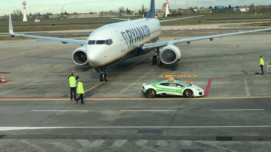 Na lotniskach pracuje wiele pojazdów, a wśród nich są samochody, z charakterystycznym napisem "follow me", które prowadzą samoloty po płycie podczas kołowania. Najczęściej są to zwykłe, tanie auta, ale Włosi nie byliby sobą, gdyby nie zrobili tego ze stylem.