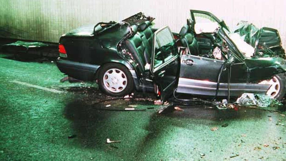 Tym właśnie autem podróżowała księżna. Uciekając przed fotoreporterami na motocyklach, kierowca limuzyny stracił panowanie nad autem. 24 minuty po północy uderzyli w trzynasty filar betonowego tunelu Pont de l’Alma w centrum Paryża. Żaden z pasażerów nie miał zapiętych pasów bezpieczeństwa. W wyniku wypadku, jej partner Dodi Al-Fayed i kierowca Henri Paul zginęli na miejscu. Księżna Diana przeżyła uderzenie. Pierwszej pomocy udzielił jej lekarz, który właśnie wtedy przejeżdżał pod tunelem. Wezwano karetkę pogotowia i o pierwszej w nocy została przetransportowana do paryskiego szpitala Salpêtrière. Lekarze walczyli o życie księżnej do czwartej nad ranem. Niestety, z powodu rozległych obrażeń wewnętrznych ciała nie udało się jej uratować. Ojciec Dodiego, egipski miliarder, przez lata utrzymywał, że za śmierć Diany zaangażowały się brytyjskie służby specjalne (m.in. MI7). Pogrzeb odbył się kilka dni później i śledziło go w telewizji miliony osób. Na miejscu pojawiły się same znane i wybitne osobistości. Byli to m.in. Steven Spielbierg, Tom Cruise czy Margaret Thatcher. Na pogrzebie nie pojawiła się Rodzina Królewska, co wywołało w opinii publicznej ogromną falę krytyki.