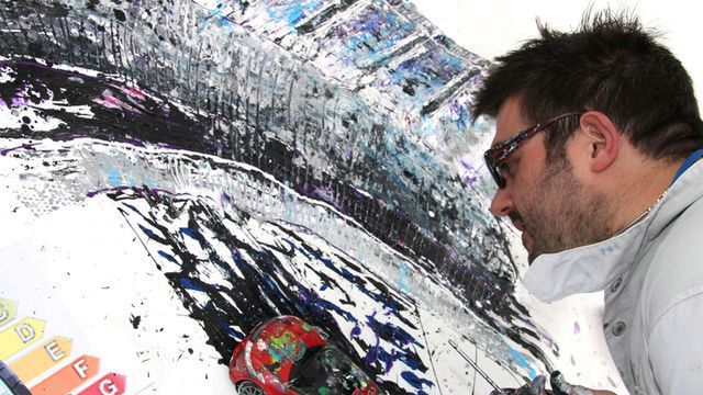 Brytyjski artysta Ian Cook namalował przy pomocy opon i zdalnie sterowanych modeli samochodów niecodzienny obraz aby uświetnić obowiązek etykietowania ogumienia w państwach Unii Europejskiej.