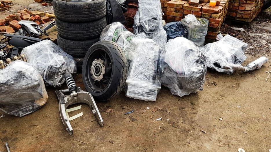 Jak stwierdzili policjanci, na posesji była "dziupla", gdzie rozbierano na części skradzione motocykle, aby później sprzedać pojedyncze podzespoły. Zabezpieczono kilkadziesiąt elementów jak ramy, silniki, koła i inne części motocyklowe. Pochodziły one z sześciu jednośladów, a siódmy czekał już w kolejce do rozebrania. Po sprawdzeniu w bazie okazało się, że wszystkie maszyny pochodziły z kradzieży w Niemczech i Belgii, a ich łączna wartość wynosi 180 tys. zł.