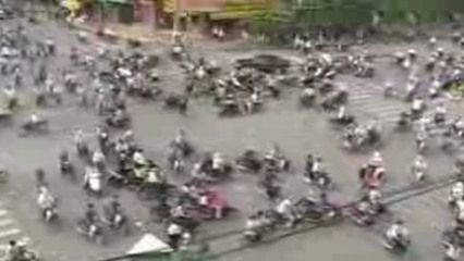 Co ciekawe jednak, nie zawsze duży ruch i brak sygnalizacji świetlnej musi oznaczać chaos i katastrofę. Kolejne skrzyżowanie znajduje się w Hanoi, w Wietnamie.