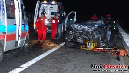 Śmiertelny wypadek na obwodnicy Oleśnicy. Kierujący fiatem uno jechał nią pod prąd i zderzył się czołowo z fordem mondeo. Dwie osoby nie żyją, a sześć jest rannych - donosi portal MojaOleśnica.pl