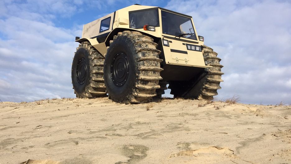 Poznajcie Szerpę. Ten wszędzie wjeżdżający łazik skonstruowali Rosjanie. Umie pokonywać trudne przeszkody, niestraszny mu żaden teren, potrafi nawet pływać. W lodowatej wodzie także.