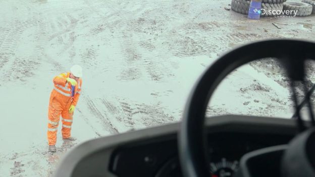 Największe wywrotki na świecie poruszają się po terenie kopalni, ale pomiędzy kopalniami muszą być przewożone na olbrzymich naczepach holowanych przez ciężarówkę. Jeden z takich transportów został powstrzymany przez kierowcę, który zostawił auto na wąskiej ulicy.
