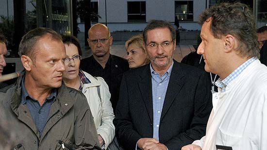 - Umówiliśmy się z panem Platzeckiem, ordynatorem tego szpitala, ambasadorem, że wszyscy, którzy są w szpitalu, a także ci, którzy zostaną dzisiaj zwolnieni, będą pod stałą opieką. Zapewnimy im oczywiście powrót i pomoc rodzinom, na razie przede wszystkim chcemy dostarczyć maksymalnie szybko informację - mówił Tusk.