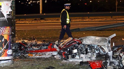(fot. PAP / Radek Pietruszka) Pasażer zginął, kierowca w stanie ciężkim trafił do szpitala po tym jak samochód Ferrari Modena 360 uderzył w wiadukt na warszawskim Mokotowie. Samochodem kierował Maciej Zientarski – dowiedział się RMF FM. Znany dziennikarz motoryzacyjny jest w stanie krytycznym. Kolega, z którym jechał - dziennikarz „Super Expressu” Jarosław Zabiega, nie przeżył.