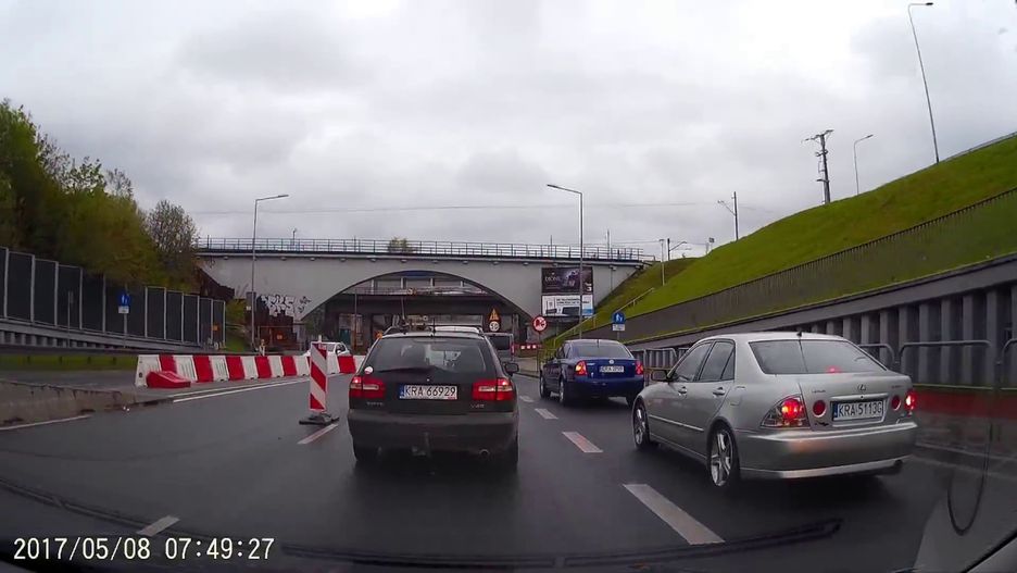 Film zarejestrowany w Krakowie pokazuje poprawne wykonanie jazdy na suwak. Pojazdy na każdym z pasów przesuwają się naprzemiennie. Każdy kierowca przepuszcza przed sobą dokładnie jeden samochód. Trzeba przyznać, że taki widok sprawia satysfakcję.