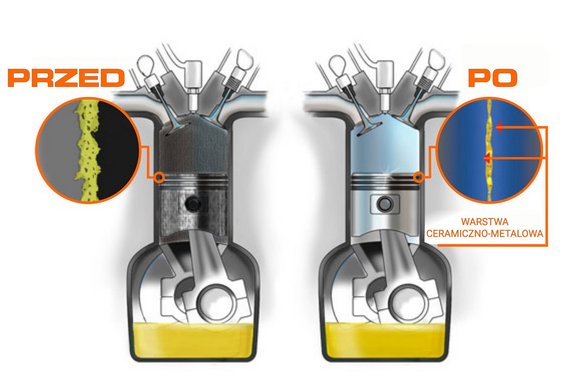 Ceramizery® to preparaty dodawane do oleju, które pod wpływem temperatury (tarcia) łączą się z cząsteczkami metalu i odbudowują zużyte powierzchnie tarcia.